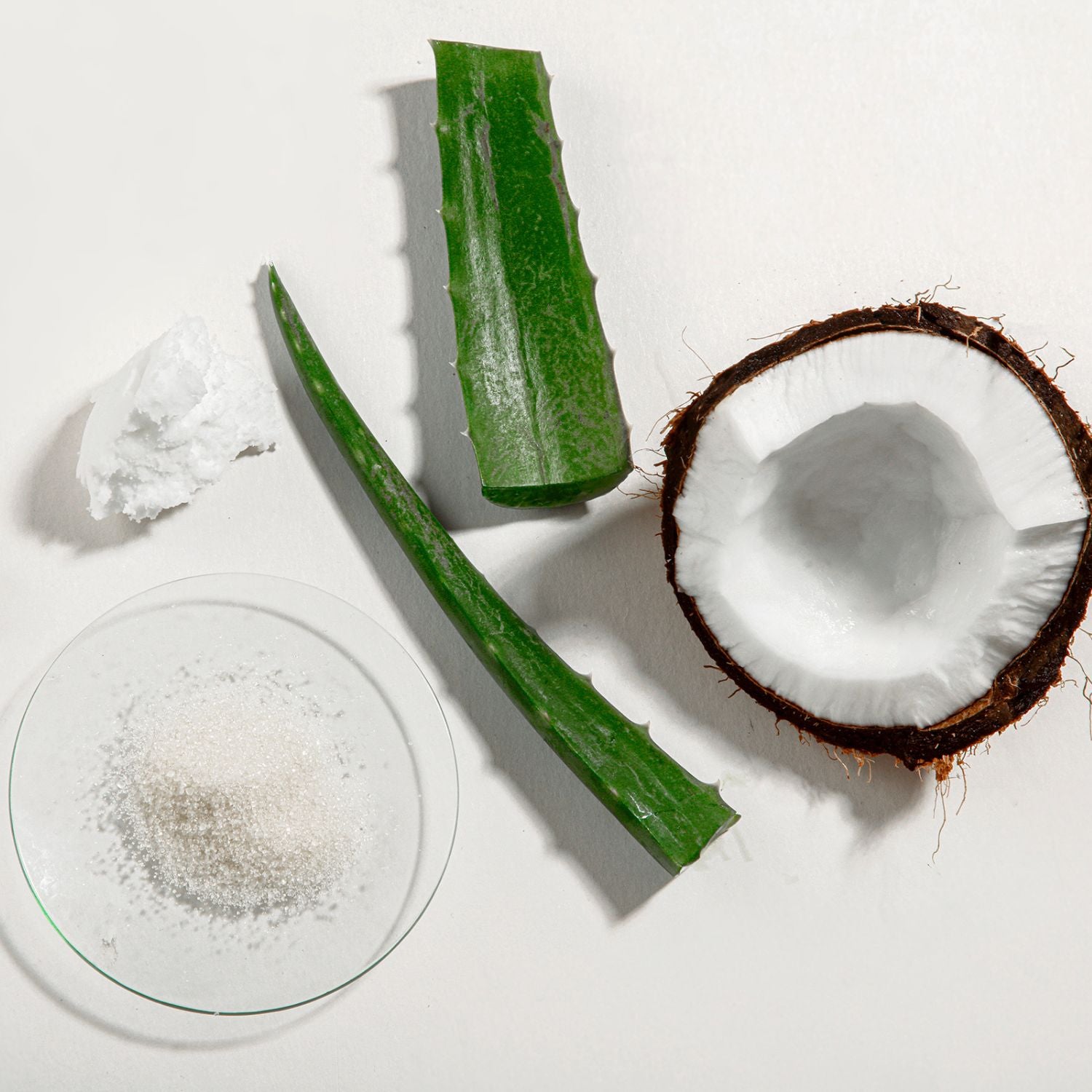 Experience the power of nature with familiar ingredients like coconut oil, shea butter, and baking soda.